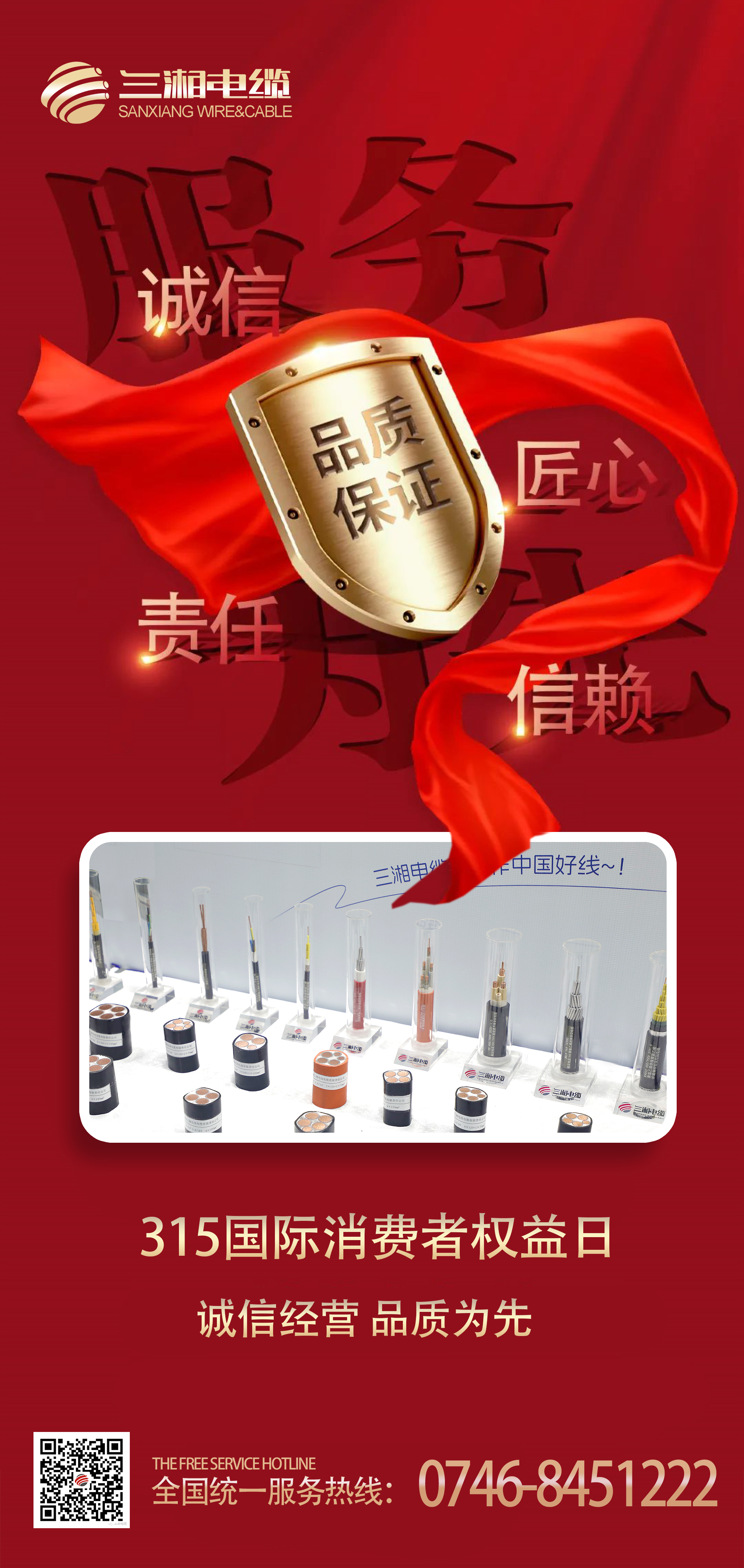 3·15消費(fèi)者權(quán)益日到了,誠信一直是三湘電纜自始至終堅(jiān)守的使命與責(zé)任,作為高品質(zhì)電線電纜制造商,三湘電纜從1999年創(chuàng)立至今,25年來踐行誠信的態(tài)度始終如一,堅(jiān)持以高質(zhì)量的產(chǎn)品品質(zhì)保障消費(fèi)者對線纜的需求,以“服務(wù) 品質(zhì) 誠信 共贏”的核心發(fā)展理念贏得客戶的滿意與認(rèn)可!
